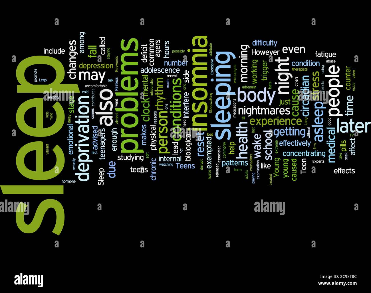 Word Cloud Summary Of Article Teens Just Can T Get Enough Sleep Stock Photo Alamy