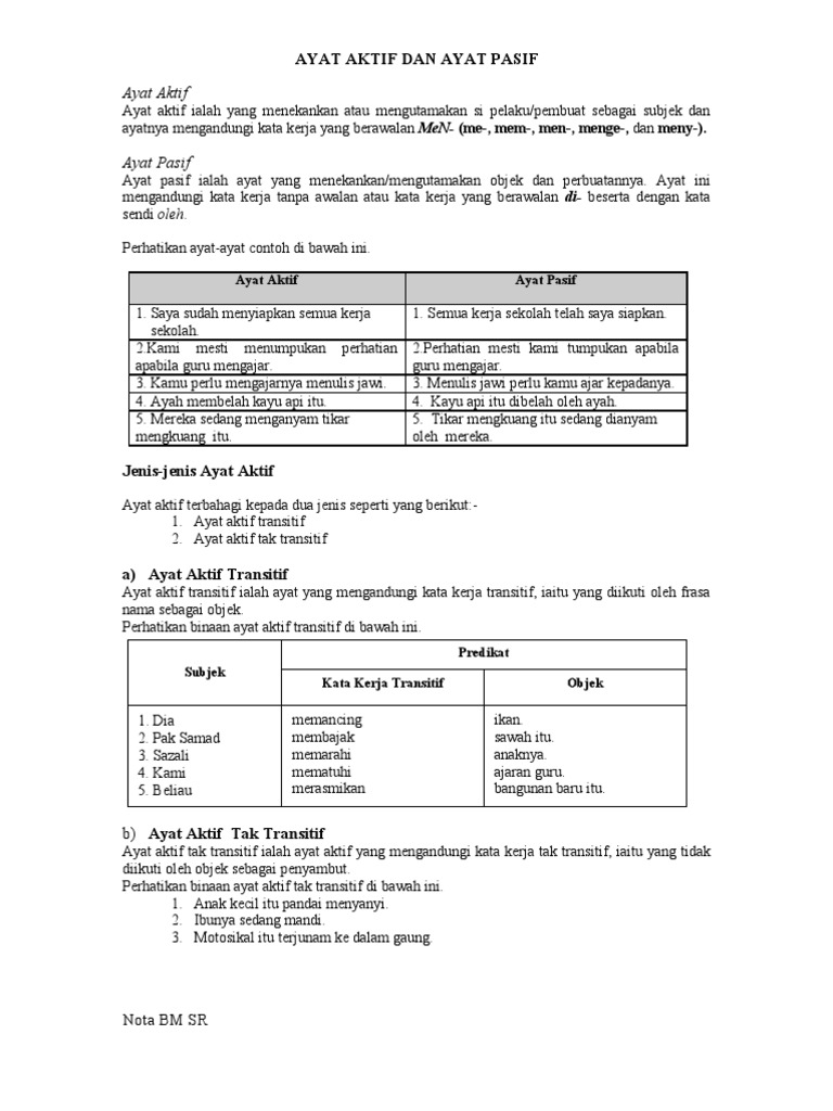 Ayat Aktif Dan Ayat Pasif Pdf